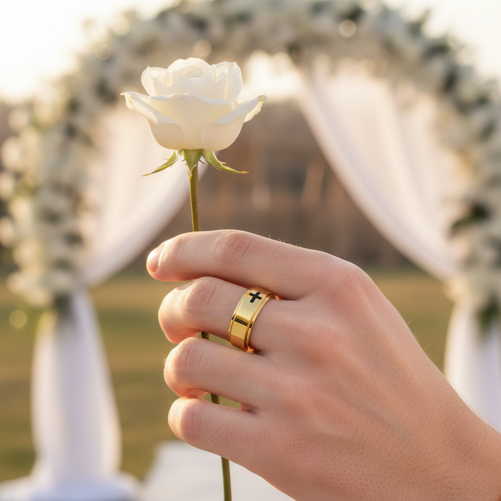 成为第一个“18K Gold Plated 316L Stainless Steel Spinner Cross Ring – Classic Religious Wedding Band for Men” 的评价者