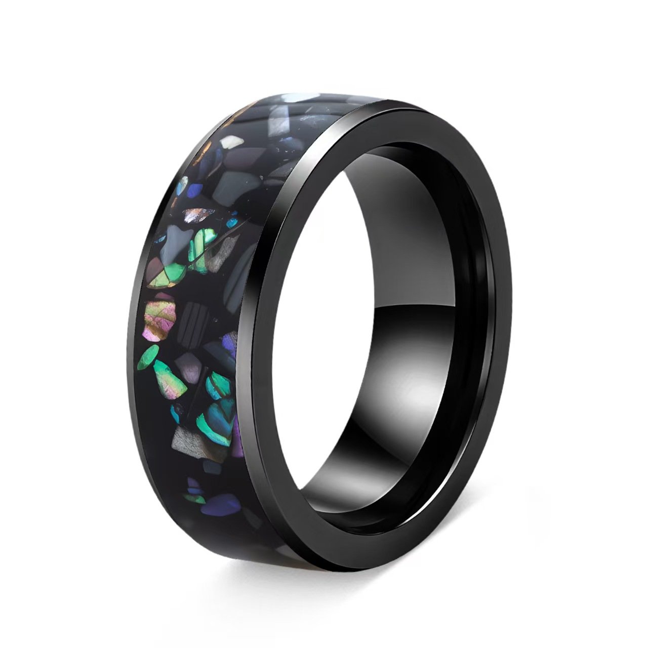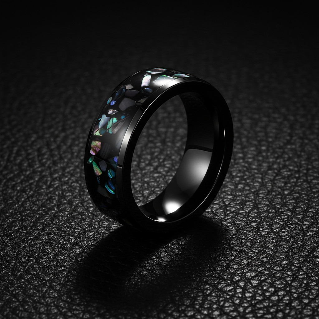 304 Stainless Steel Abalone Shell Inlay Ring – Black Minimalist Engagement Band for Men & Women