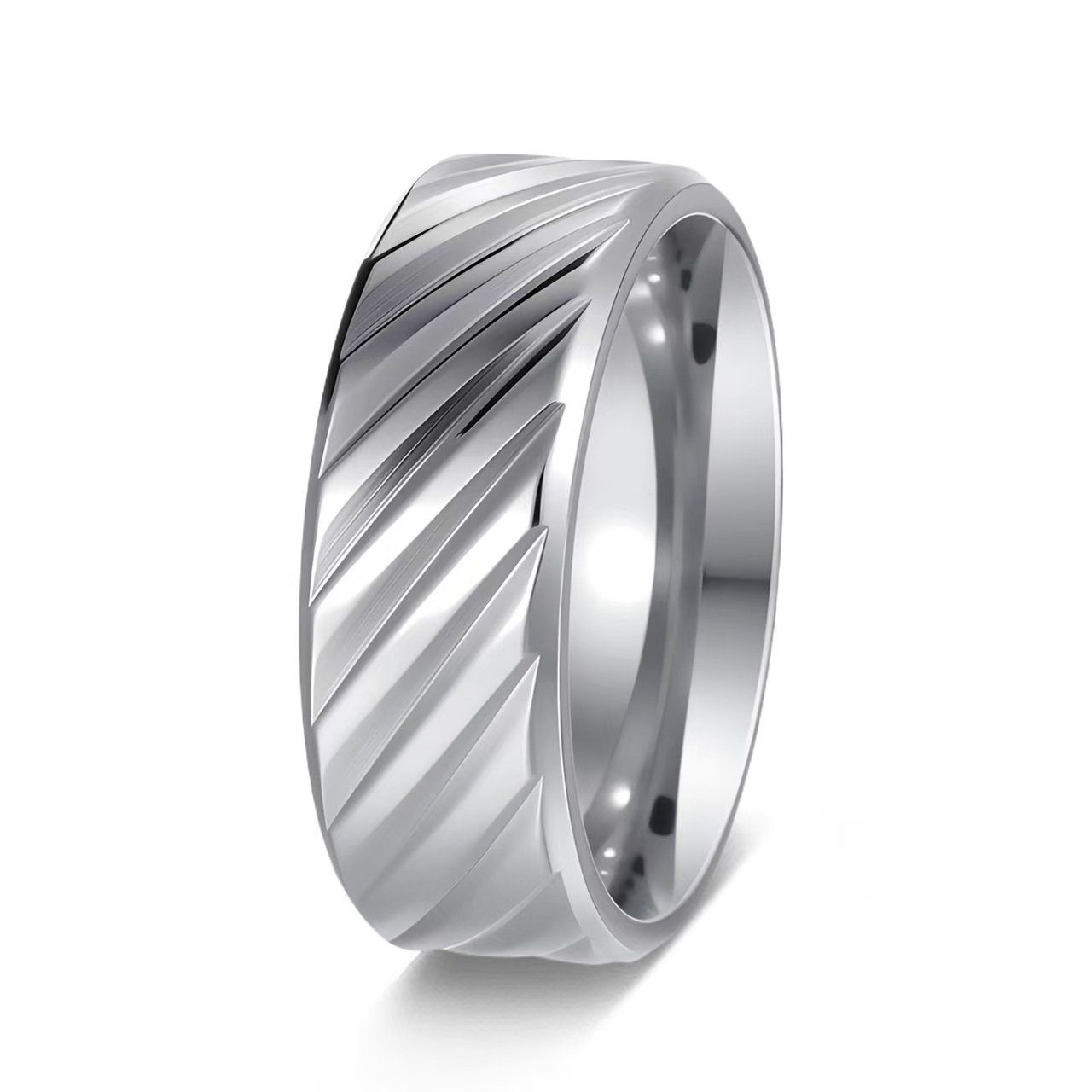 304 Stainless Steel Diagonal Twill Wedding Band – Hand Polished Minimalist Ring for Men and Women