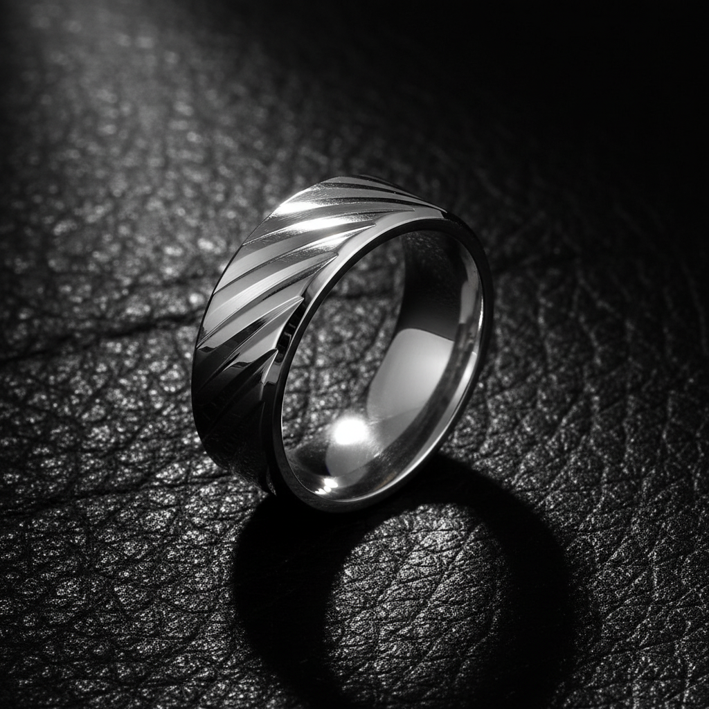 Celebrate your commitment with this precision-crafted 304 stainless steel wedding band. Featuring a striking diagonal twill texture and a hand-polished mirror finish, this minimalist ring combines industrial strength with modern elegance. Order now for a lifetime of style.