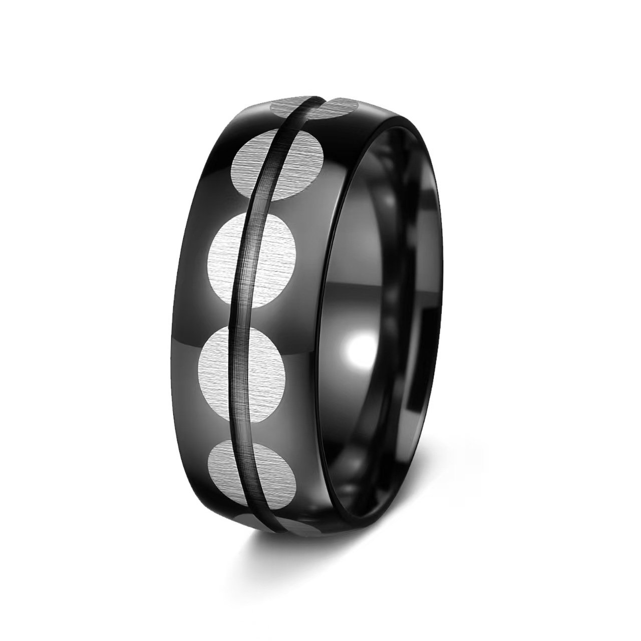 304 Stainless Steel Minimalist Geometric Biker Ring – Black Brushed Dot Industrial Band