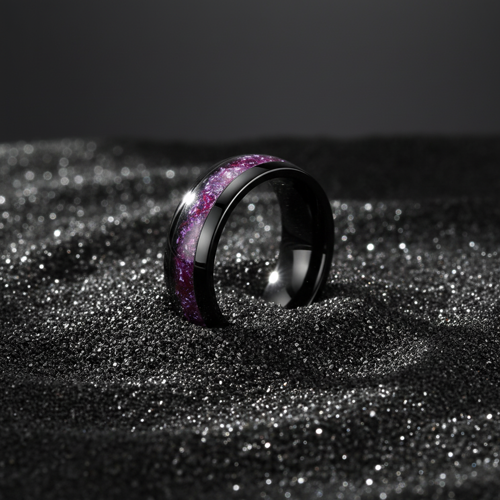 Discover the perfect fusion of durability and elegance. This 304 stainless steel ring features a striking purple amethyst inlay and a high-shine black finish, making it an ideal choice for engagements or modern statement wear. Shop now for a timeless look!
