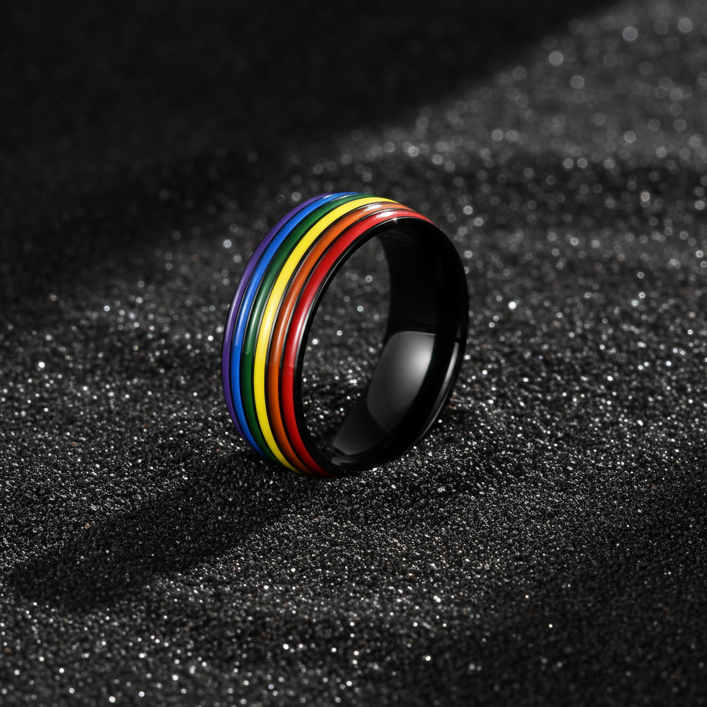 304 Stainless Steel Rainbow Pride Ring Black Y2K Enamel Band Unisex Promise Gift