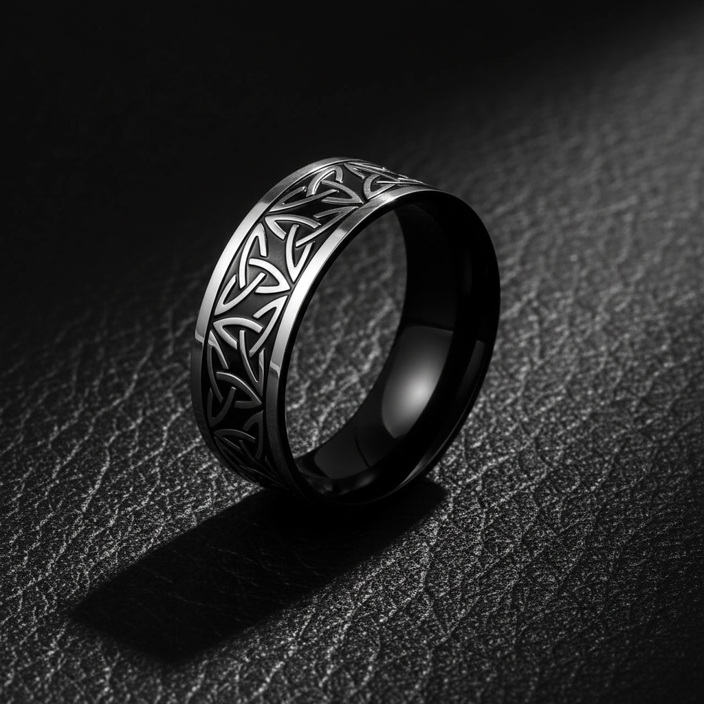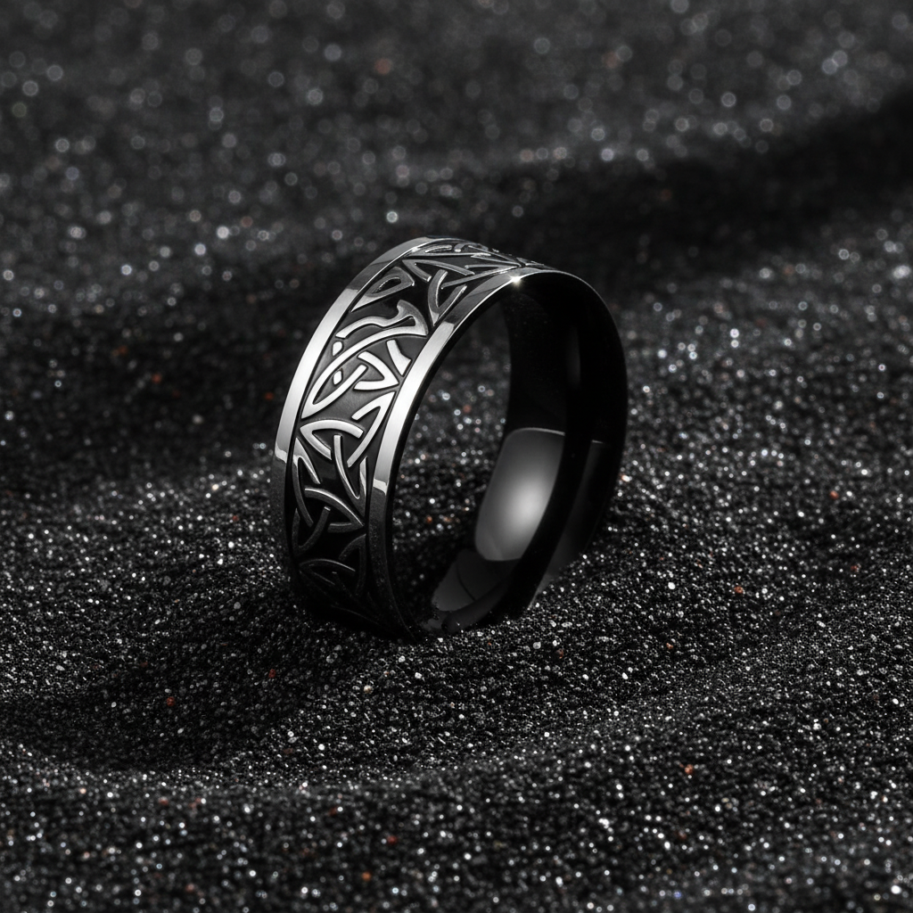 Elevate your daily style with this Viking-inspired Celtic Trinity knot ring. Crafted from premium 316L stainless steel with a high-contrast etched oil finish, this gothic band combines ancient symbolism with modern durability. Shop now for a waterproof, anti-tarnish statement piece.